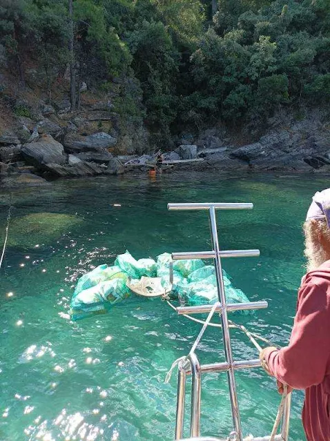 Συγκεκριμένα έγινε προσπάθεια καθαρισμού του βυθού και της ακτής στις περιοχές κερασίδια και Γραμβούσα.